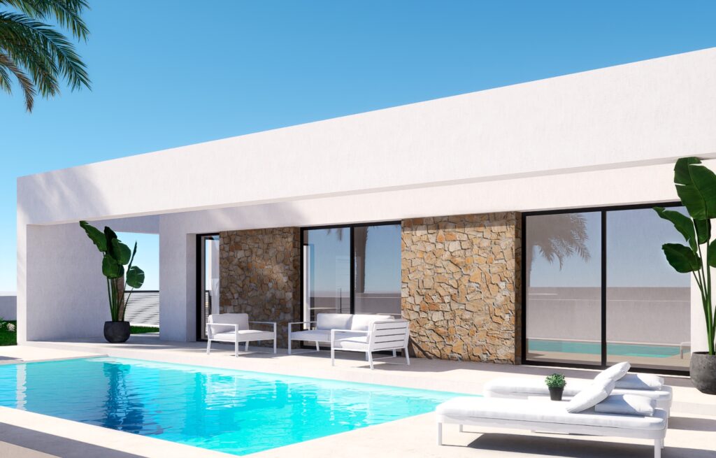 Dit is een kleinschalig nieuwbouwproject in Finestrat bestaande uit een beperkt aantal vrijstaande villa’s, ontworpen voor comfortabel en modern wonen aan de Costa Blanca. De villa’s beschikken over drie slaapkamers, twee badkamers en een extra gastentoilet, allemaal gelijkvloers ingedeeld voor optimaal wooncomfort. De open leefruimte vormt het hart van de woning en bestaat uit een ruime woonkamer met een open keuken met kookeiland, waarbij grote ramen van vloer tot plafond zorgen voor veel natuurlijk licht en een directe verbinding met het terras en de tuin. Elke villa staat op een ruim perceel van circa 544 tot 802 m² en beschikt over een privézwembad van ongeveer 36 m², een aangelegde tuin en parkeergelegenheid op eigen terrein. Voor wie extra ruimte wenst, is er de mogelijkheid om een kelder van circa 144 m² toe te voegen, geschikt voor bijvoorbeeld een fitnessruimte, kantoor, bioscoop of extra slaapkamers.